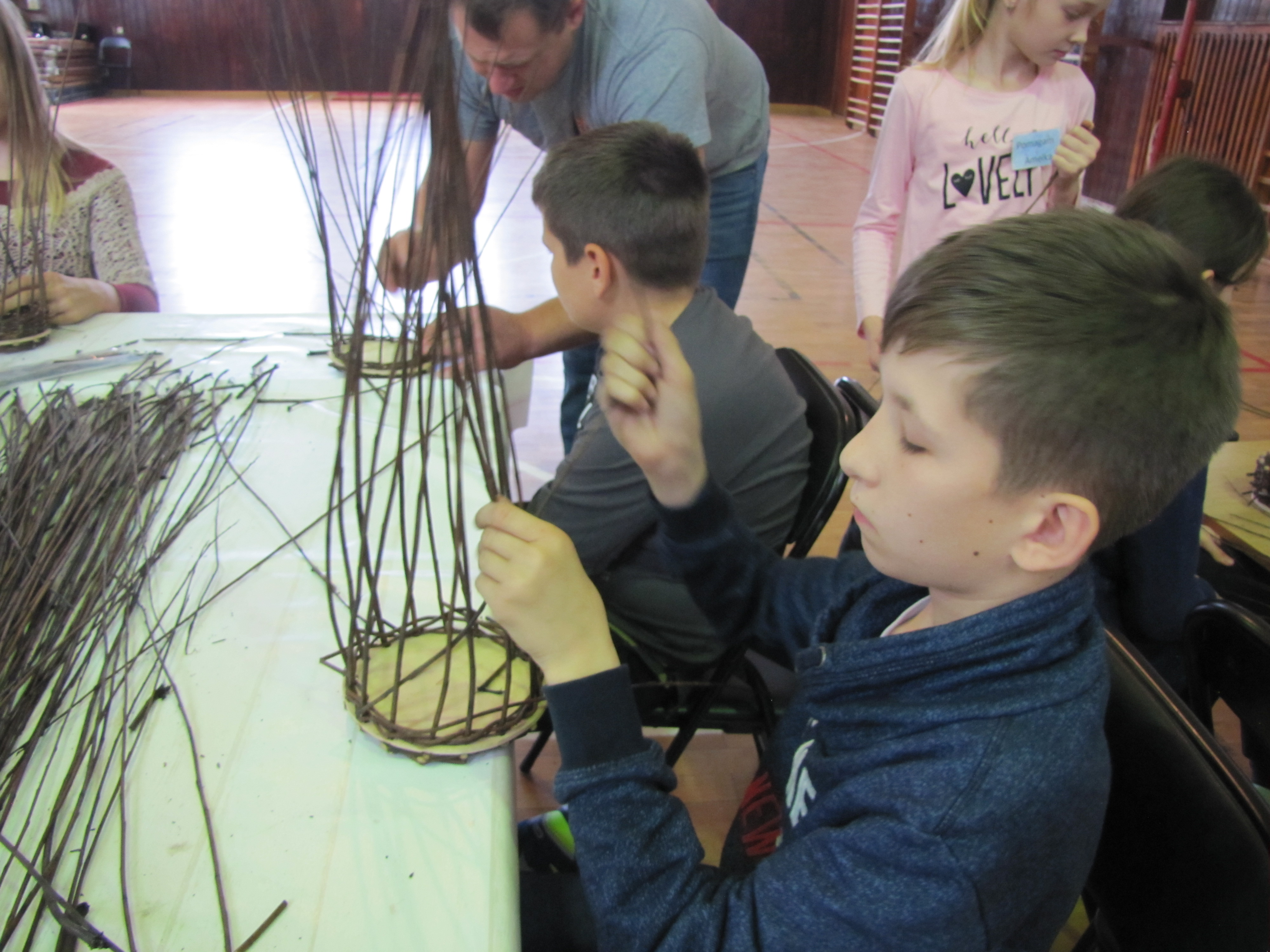 warsztatach wikliniarskich. Dzieci i młodzież wyplatały koszyczki, które na za
