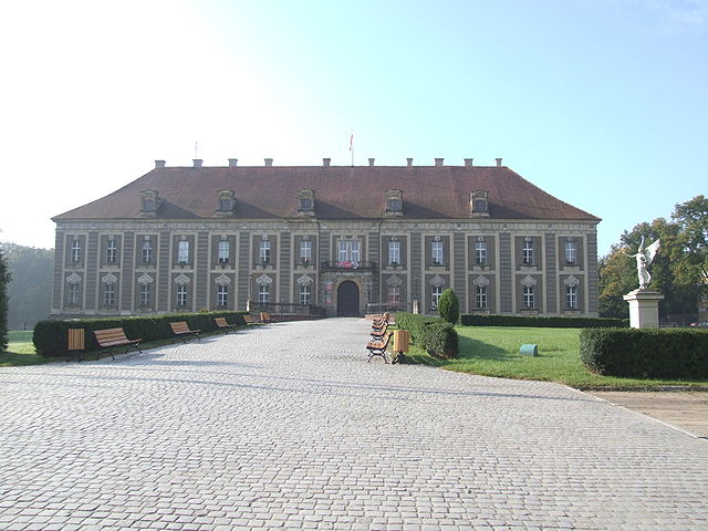 pałac położony na skraju parku krajobrazowego w dolinie Bobru. Budowę